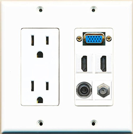 RiteAV Power Outlet Svga 2 HDMI White Coax 3.5mm Wall Plate White
