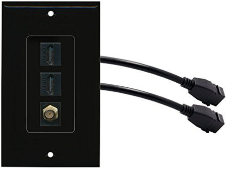 RiteAV (1 Gang Decorative) 2 HDMI Black Coax Wall Plate w/Pigtail Extension Cable Black