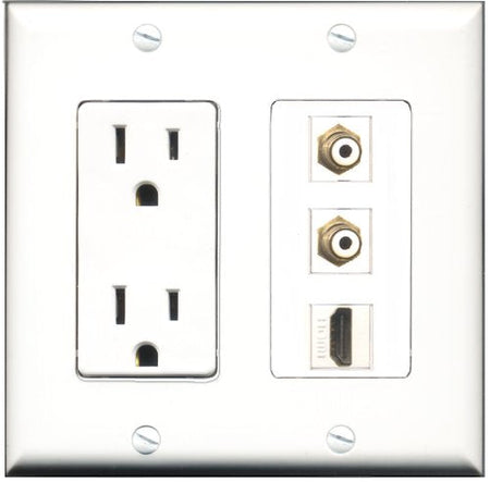 RiteAV - 15 Amp Power Outlet 1 Port HDMI 2 Port RCA White Decorative Wall Plate