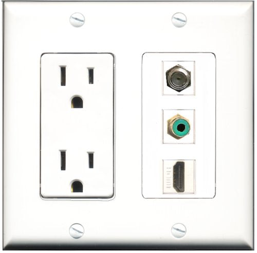 RiteAV - 15 Amp Power Outlet 1 Port HDMI 1 Port RCA Green 1 Port Coax Decorative Wall Plate
