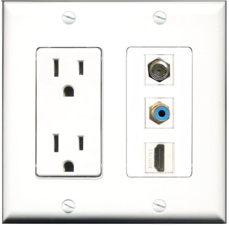 RiteAV - 15 Amp Power Outlet 1 Port HDMI 1 Port RCA Blue 1 Port Coax Decorative Wall Plate