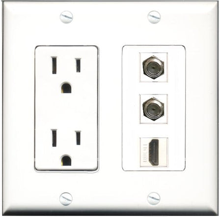 RiteAV - 15 Amp Power Outlet 1 Port HDMI 2 Port Coax Decorative Wall Plate
