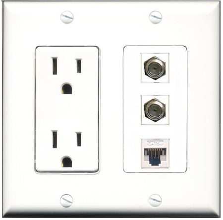 RiteAV - 15 Amp Power Outlet 2 Port Coax 1 Port Cat5e Ethernet White Decorative Wall Plate