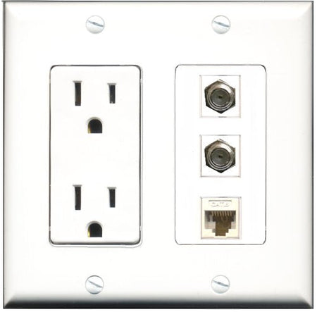 RiteAV - 15 Amp Power Outlet 2 Port Coax 1 Port Cat6 Ethernet Ethernet White Decorative Wall Plate