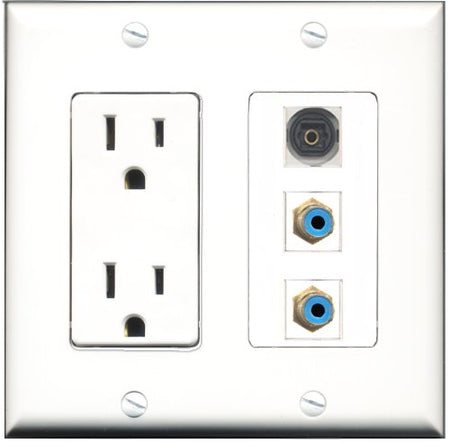 RiteAV - 15 Amp Power Outlet 2 Port RCA Blue 1 Port Toslink Decorative Wall Plate