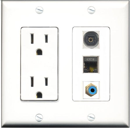 RiteAV - 15 Amp Power Outlet 1 Port RCA Blue 1 Port Shielded Cat6 Ethernet Ethernet 1 Port Toslink Decorative Wall Plate