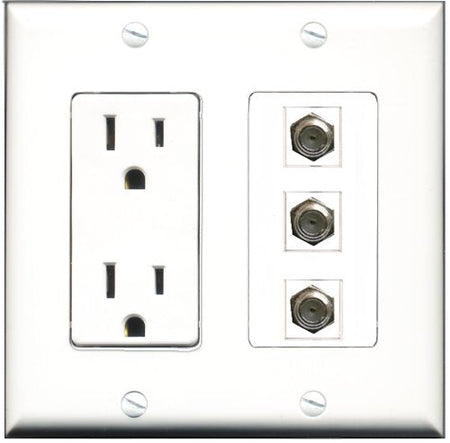 RiteAV - 15 Amp Power Outlet 3 Port Coax Decorative Wall Plate