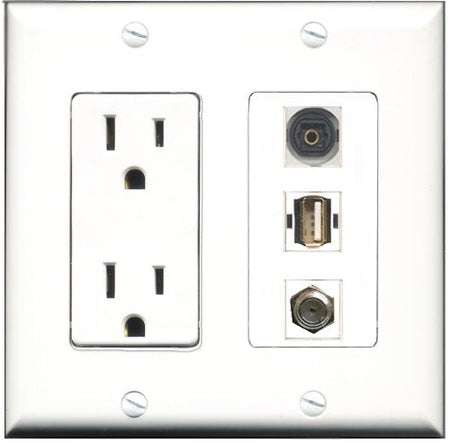 RiteAV - 15 Amp Power Outlet 1 Port Coax 1 Port USB A-A 1 Port Toslink Decorative Wall Plate