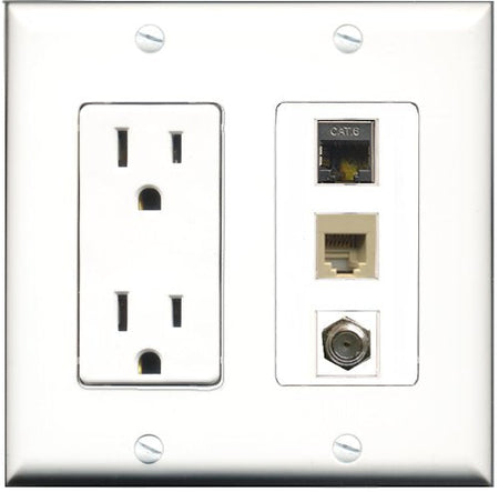 RiteAV - 15 Amp Power Outlet 1 Port Coax 1 Port Phone Beige 1 Port Shielded Cat6 Ethernet Ethernet Decorative Wall Plate