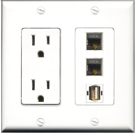 RiteAV - 15 Amp Power Outlet 1 Port USB A-A 2 Port Shielded Cat6 Ethernet Ethernet Decorative Wall Plate