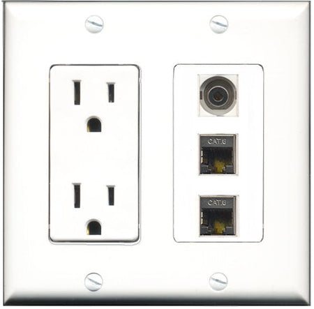 RiteAV - 15 Amp Power Outlet 2 Port Shielded Cat6 Ethernet Ethernet 1 Port 3.5mm Decorative Wall Plate