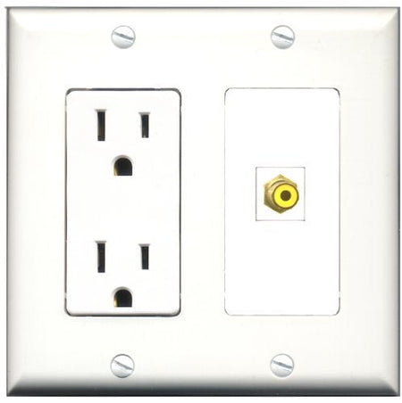 RiteAV - 15 Amp Power Outlet and 1 Port RCA Yellow Decorative Type Wall Plate White