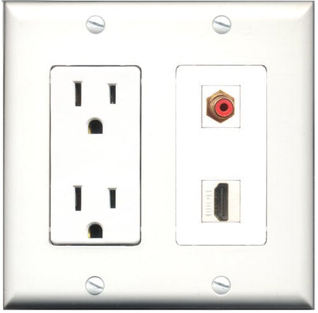 RiteAV - 15 Amp Power Outlet and 1 Port HDMI and 1 Port RCA Red Decorative Type Wall Plate White