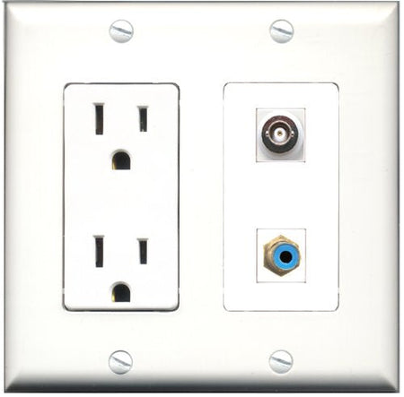 RiteAV - 15 Amp Power Outlet and 1 Port RCA Blue and 1 Port BNC Decorative Type Wall Plate White