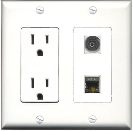 RiteAV - 15 Amp Power Outlet and 1 Port Shielded Cat6 Ethernet and 1 Port Toslink Decorative Type Wall Plate White