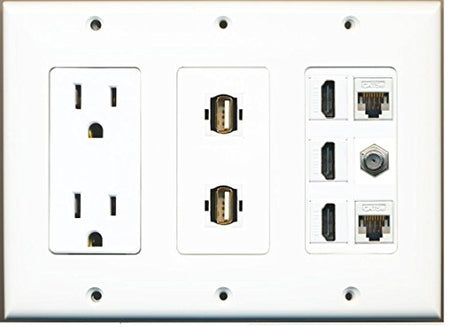 RiteAV 15 Amp Power Outlet 2 USB - 3 HDMI 2 Ethernet 1 Coax Cable TV Wall Plate