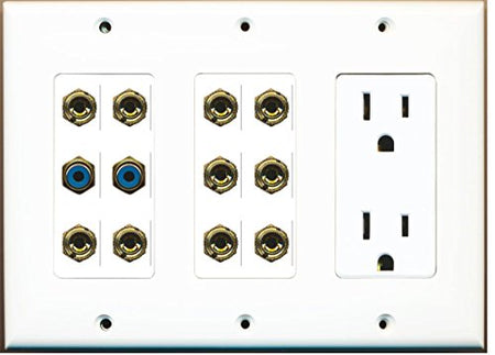 RiteAV - (3 Gang 15A Power Outlet 2 RCA Blue 10 Banana Wall Plate White