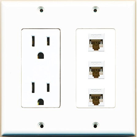 RiteAV (2 Gang Decorative 15A Power Outlet 3 Cat6 White Wall Plate White