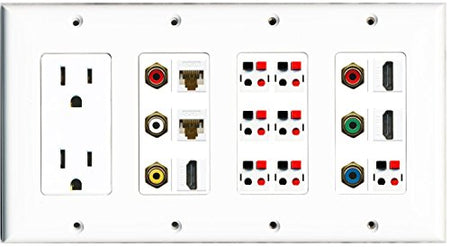 RiteAV (4 Gang 15A Outlet 3 HDMI 2 Cat6 Component Composite 7 Speaker Wall Plate