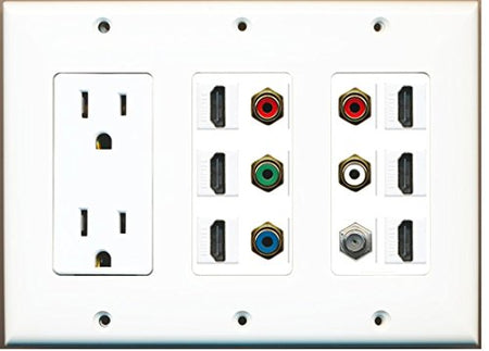 RiteAV - (3 Gang 15A Power Outlet 6 HDMI Coax Component Video RCA White Wall Plate