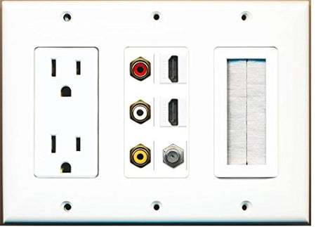 RiteAV - (3 Gang 15A Power Outlet Mesh-Brush 2 HDMI Coax Composite Video Wall Plate