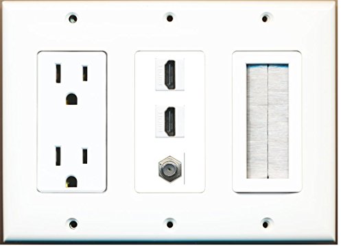 RiteAV - (3 Gang 15A Power Outlet Mesh-Brush 2 HDMI Coax Wall Plate White