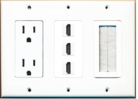 RiteAV - (3 Gang 15A Power Outlet Mesh-Brush 3 HDMI Wall Plate White
