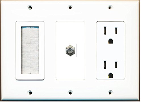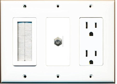 RiteAV - (3 Gang) 15A Power Outlet Mesh-Brush Coax Wall Plate White