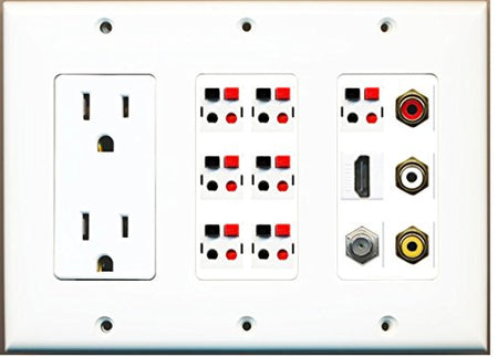 RiteAV (3 Gang 15A Power Outlet HDMI Coax Composite Video 7 Speaker Wall Plate White