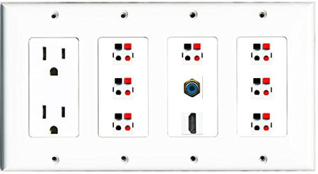 RiteAV - (4 Gang 15A Power Outlet HDMI RCA Blue 7 Speaker Jack Wall Plate White