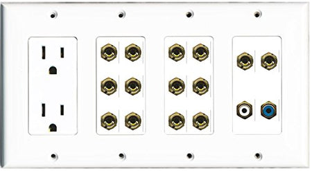 RiteAV - (4 Gang 15A Power Outlet RCA Blue RCA White 14 Banana Wall Plate White
