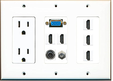 RiteAV - (3 Gang 15A Power Outlet Svga 5 HDMI Coax 3.5mm Wall Plate White