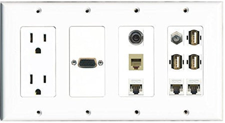 RiteAV - (4 Gang 15A Power Outlet Svga Coax 3 Cat5e+USB 3.5mm Rj11-12 Phone Wall Plate
