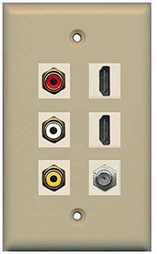 RiteAV RCA Ivory Composite 2 HDMI 1 Coax Wall Plate 1 Gang