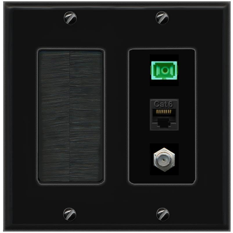 RiteAV 1 Port Fiber Optic Jack SC Simplex APC + Cat6 + Coax Wall Plate-Brush Black/Black