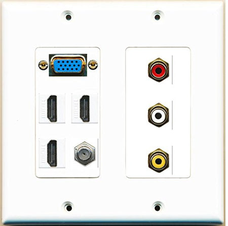 RiteAV - (SVGA Plate -2 Gang 3 HDMI 1 Coax Composite Video Wall Plate Dual Gang White