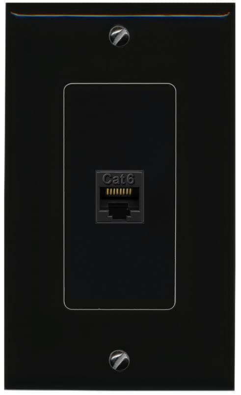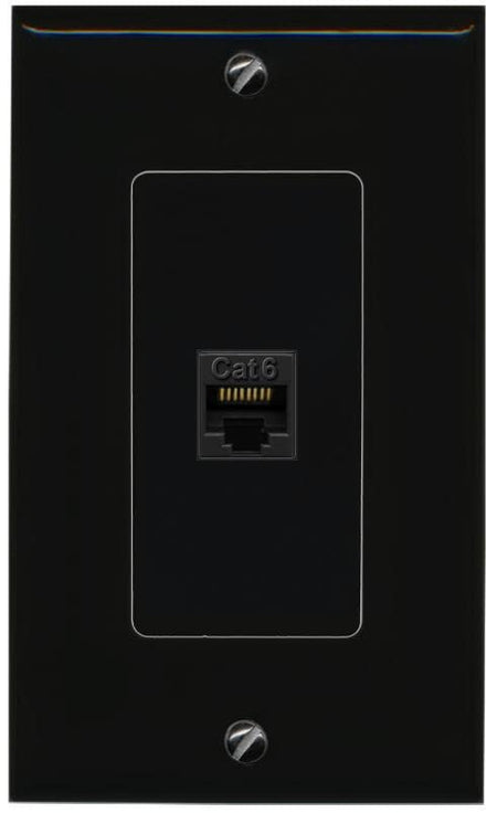 RiteAV 1 Port Cat6 Ethernet Wall Plate Female-Female - 1 Gang [Black/Black]