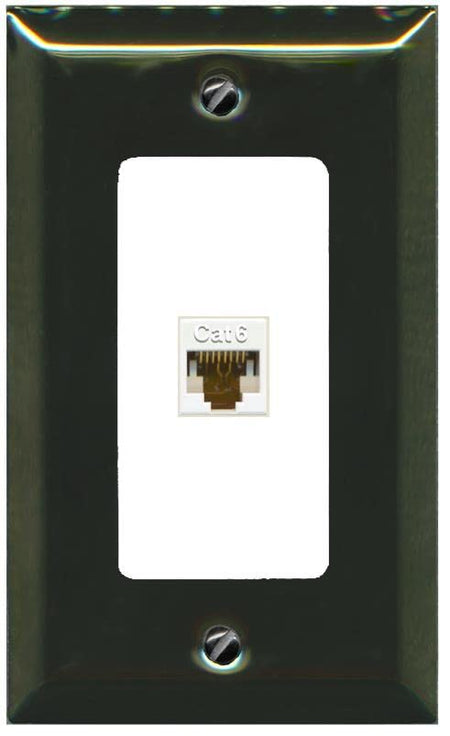 RiteAV 1 Port Cat6 Ethernet Wall Plate Female-Female - 1 Gang [Brass/White]