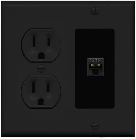 RiteAV 1 Port Cat6 Ethernet Wall Plate Female-Female - Round Outlet [Black/Black]