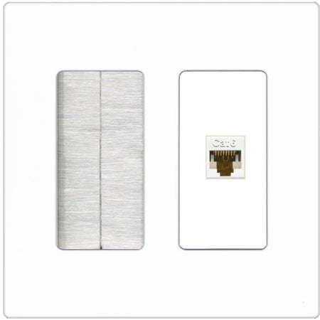 RiteAV 1 Port Cat6 Ethernet Wall Plate Female-Female - Brush [Screwless White]