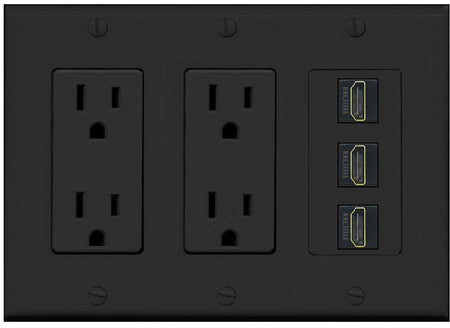 RiteAV 3 Port HDMI Wall Plate - 3G Dual Outlet [Black/Black]