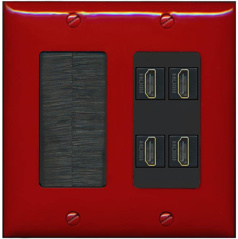 RiteAV 4 Port HDMI Wall Plate - Brush [Red/Black]