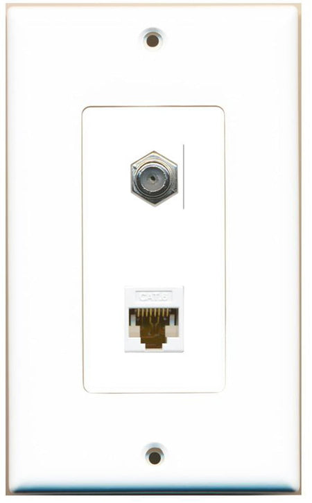 RiteAV - 1 Coax Cable TV F and 1 Cat6 White Ethernet Wall Plate Decorative - White