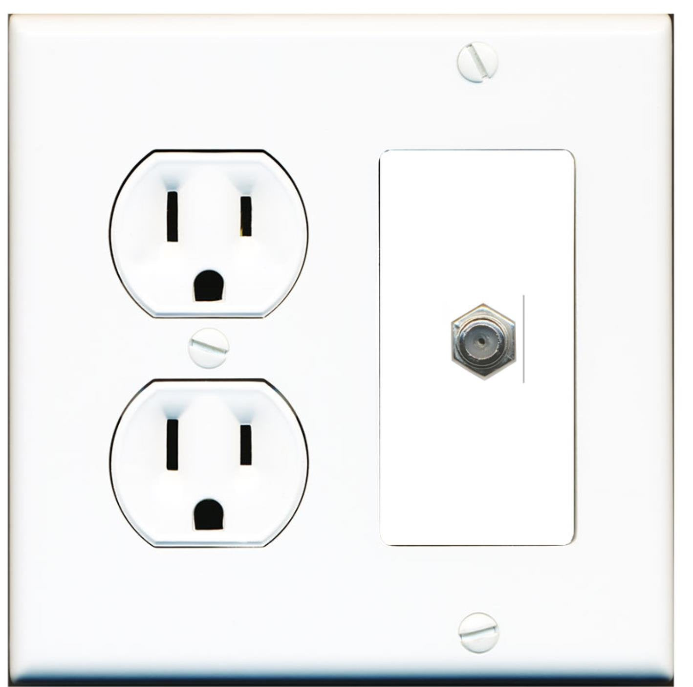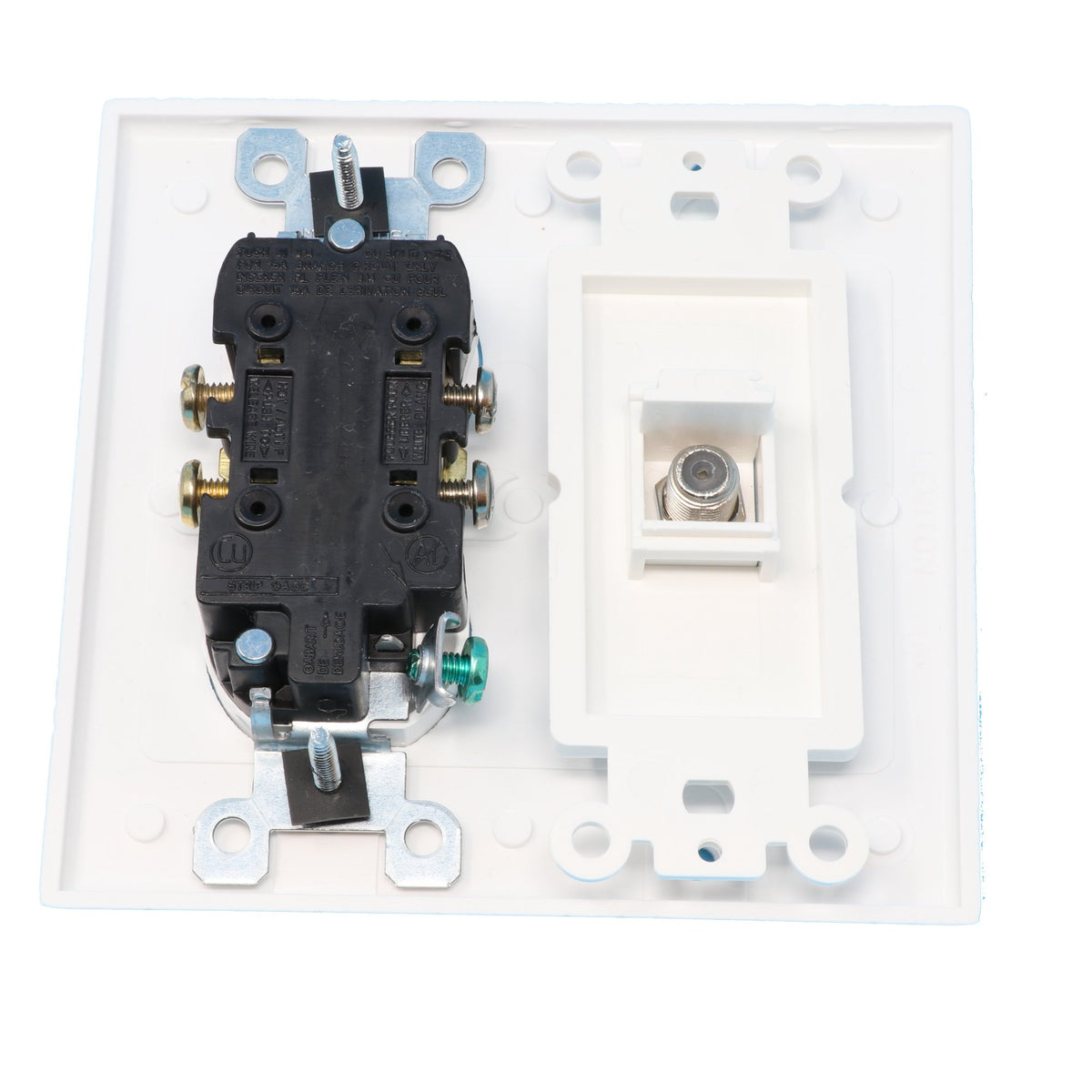 RiteAV (2 Gang Decorative) 15 Amp Round Power Outlet Coax Cable TV Wall Plate - White