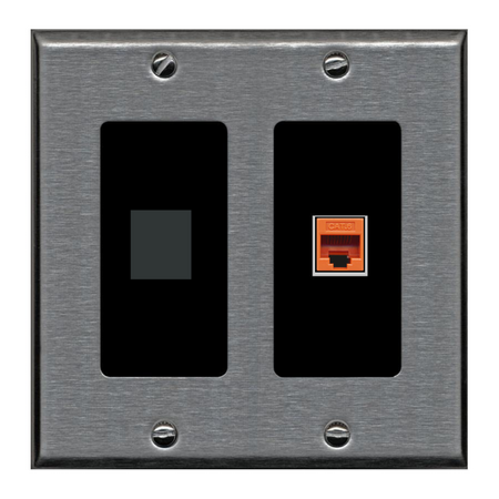RiteAV Custom Wall Plate 2 Port - 2 Gang [Stainless/Black]