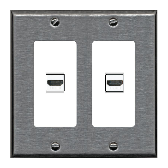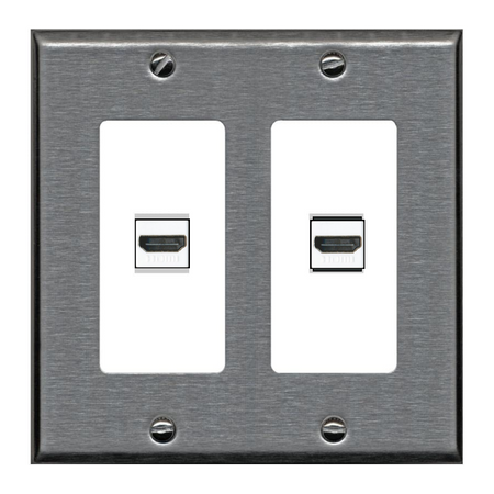 RiteAV Custom Wall Plate 2 Port - 2 Gang [Stainless/White]
