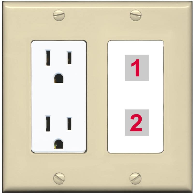 RiteAV Custom Wall Plate 2 Port - Outlet [Ivory/White]
