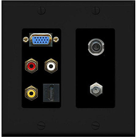 RiteAV - (2 Gang SVGA Composite 3.5mm HDMI Coax Wall Plate Black