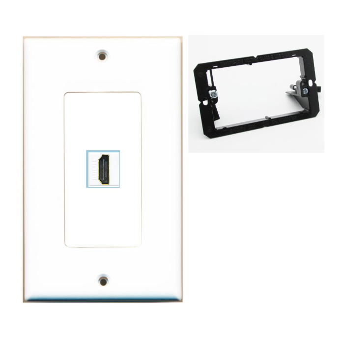 1 Port Custom Keystone Wall Plate DecorZ White w/Mounting Bracket