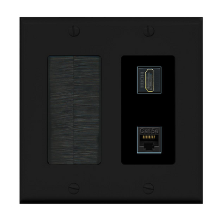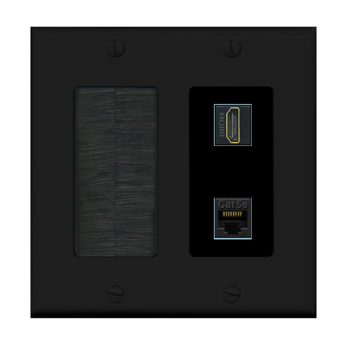 2 Port Custom Keystone Wall Plate 2 Gang DecorZ Black w/Brush Insert
